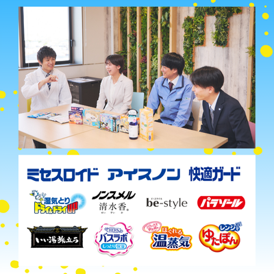 防虫剤「ミセスロイド」、除湿剤「ドライ&ドライUP」、保冷剤「アイスノン」、マスク「快適ガード」「be-style」、保温具「ゆたぽん」、脱臭剤「ノンスメル」、くつした止め「ソックタッチ」など、皆様にご愛顧いただいている商品を開発、製造、販売しています。